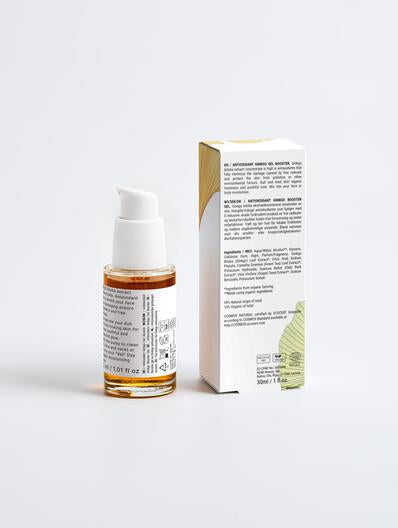 Ginkgo biloba extract concentrate face gel is high in antioxidants that help minimize the damage caused by free radicals and protects the skin from pollution or other environmental factors. Dull and tired skin regains freshness and a youthful look.